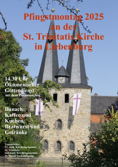 Auch dieses Jahr laden die kath. Kirchengemeinde St. Mariä Verkündigung und die ev.-luth. Kirchengemeinde St. Trinitatis am Pfingstmontag zum ökumenischen Gottesdienst im Grünen an der Südseite der St. Trinitatis Kirche ein.